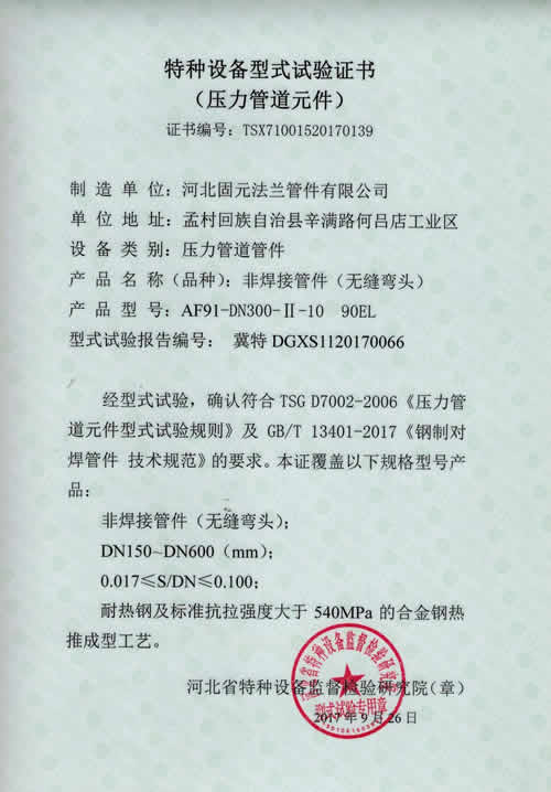 图示-(特种设备型式试验证书-无缝弯头)图片